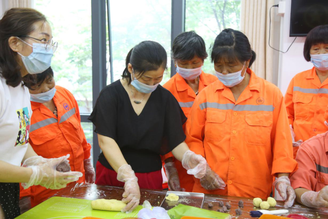 昌碩街道在九州廣場城市溫暖客廳開展了“融融端午意 民族一家親”城市美容師綠豆糕DIY活動。來自今典物業的20名環衛工人放下手中的掃把,戴上口罩和手套,在志愿者的仔細講解和幫助下自己動手,享受制作糕點的樂趣。
